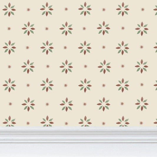 Green and Red Stencil Pinwheel Colonial Wallpaper Large Scale