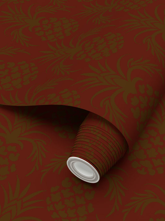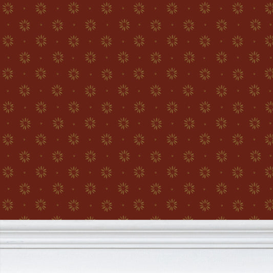 Colonial Wallpaper Stencil Dark Gold on Dark Red Wallpaper