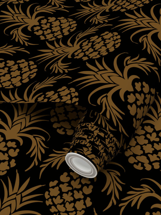 Gold/Mustard Background with Black petals larger Scale Stencil Wallpaper