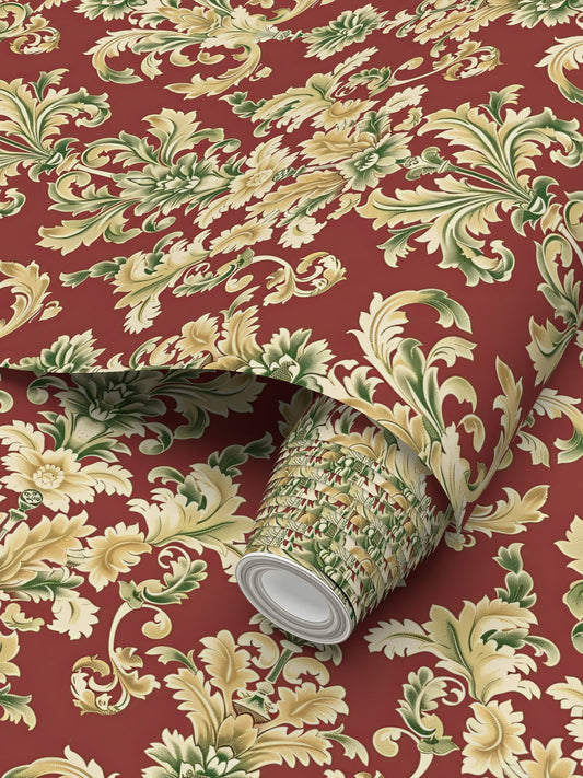Green and Red Stencil Colonial Wallpaper Large Scale