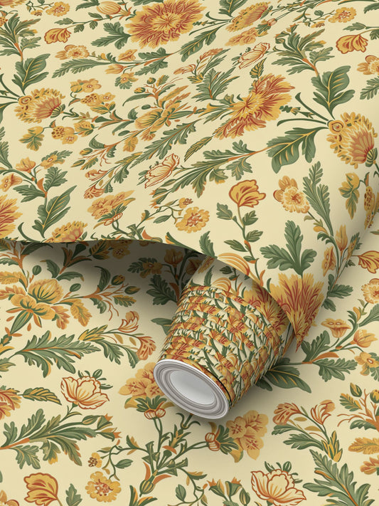 Medium Print Stencil Petals on Gold/Mustard Wallpaper